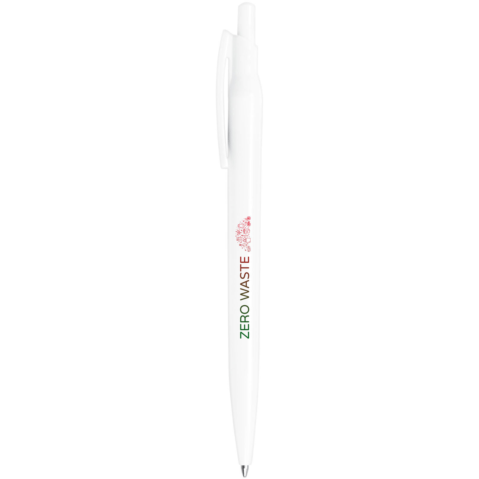 Kugelschreiber mit Klickmechanismus aus recyceltem PET, das von gebrauchten Wasser- und Sodaflaschen stammt (mit Ausnahme der Mine und der Feder). Eine 500 ml Flasche wird zur Herstellung eines Kugelschreibers verwendet. Enthält eine europäische X20-Mine mit dezenter Tinte und einer Schreiblänge von etwa 2000 Metern. Auch mit einer schwarzen Tintenmine erhältlich (107722). Hergestellt in Italien.