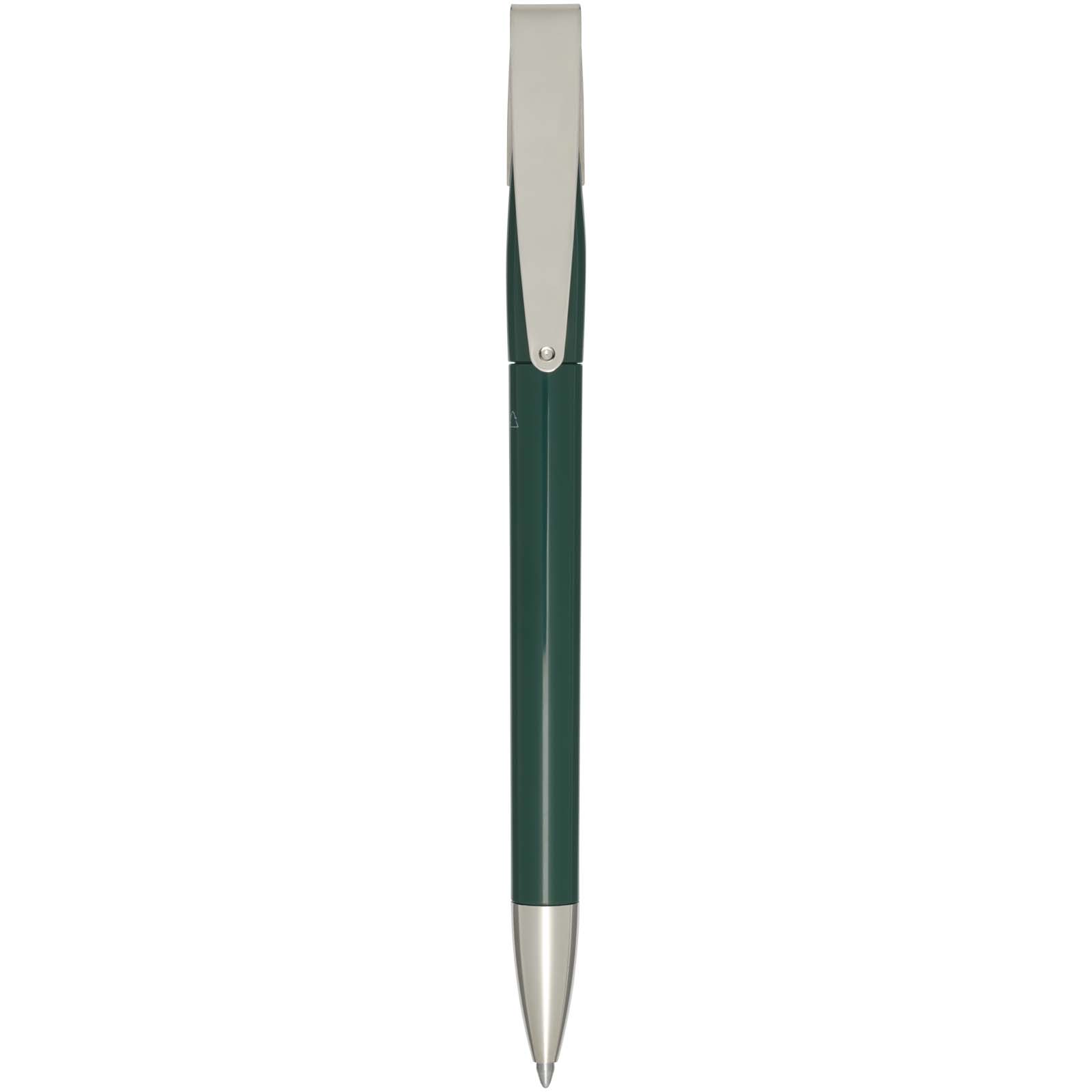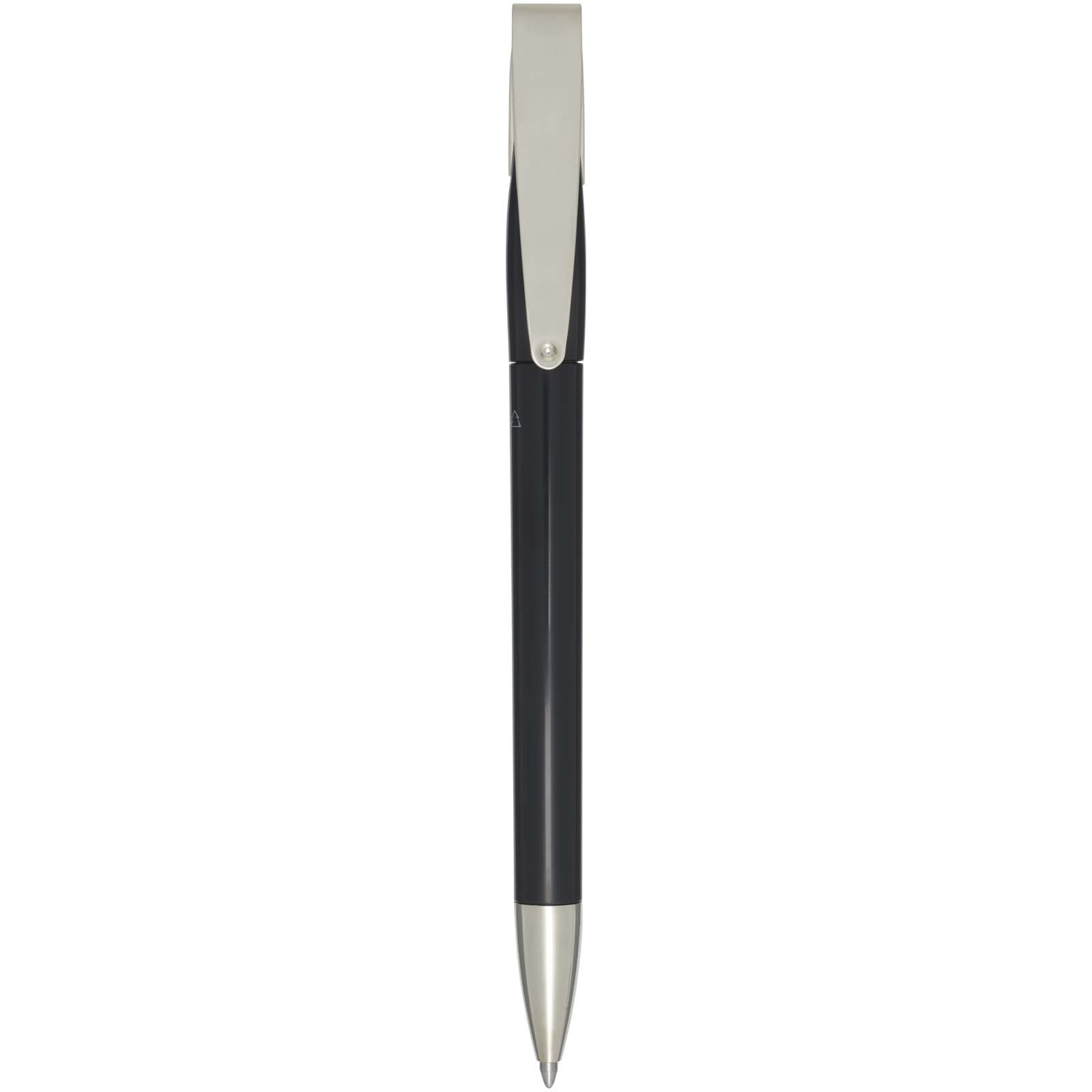 Kugelschreiber mit Schaft aus recyceltem Kunststoff, Edelstahlspitze und -clip. Tintenfarbe: Blau. Schreiblänge: 3000 Meter. Strichstärke: 1,00 mm. Hergestellt in Deutschland.