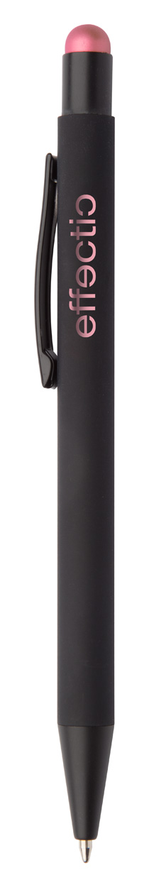 Aluminium-Kugelschreiber mit Touchpen und gummierter Oberfläche und Spezialbeschichtung für eine Farbgravur (Gravurfarbe abgestimmt mit Stylus), blauschreibend.