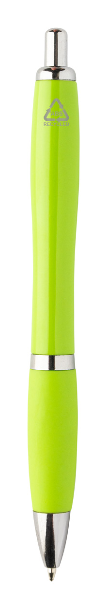 Kugelschreiber aus recyceltem ABS-Kunststoff mit farblich passendem Griffstück und verchromten Teilen, blauschreibend.