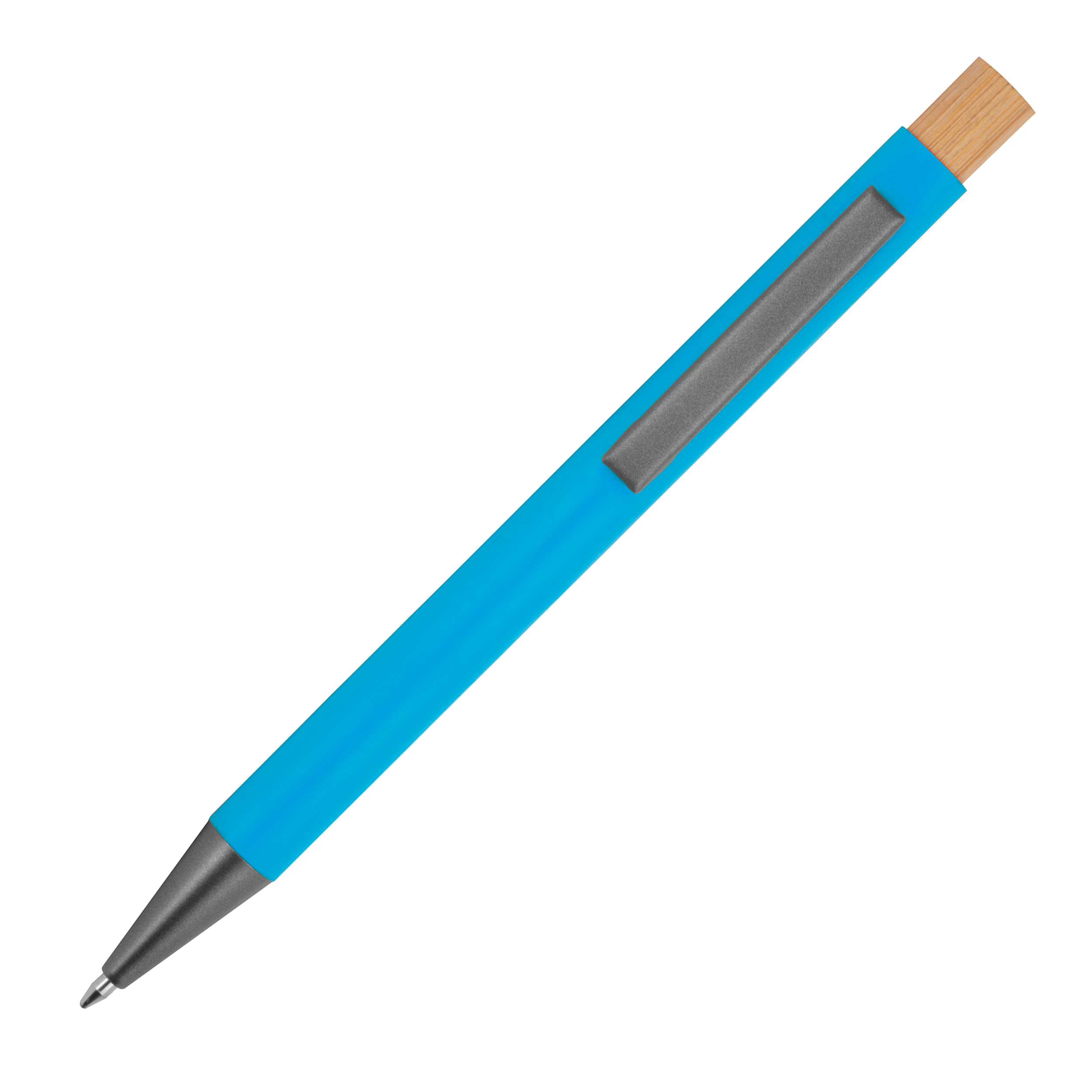 Kugelschreiber aus recyceltem Aluminium mit Bambusdrücker ROSARIO als Werbegeschenk für Firmenkunden.