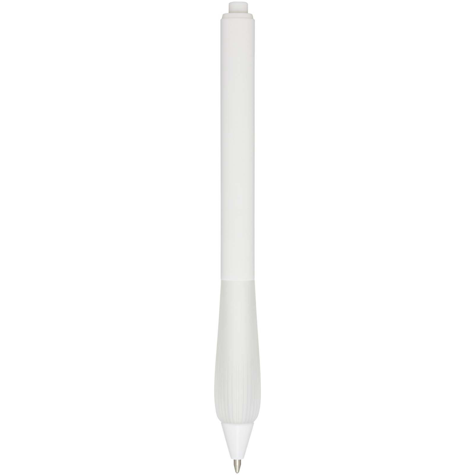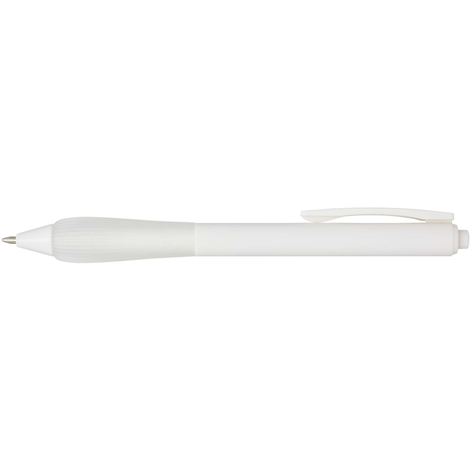 Kugelschreiber aus recyceltem Kunststoff mit gummiertem Schaft und Griff aus TPR. Tintenfarbe: Schwarz. Schreiblänge: 1000 Meter. Strichstärke: 1,0 mm.