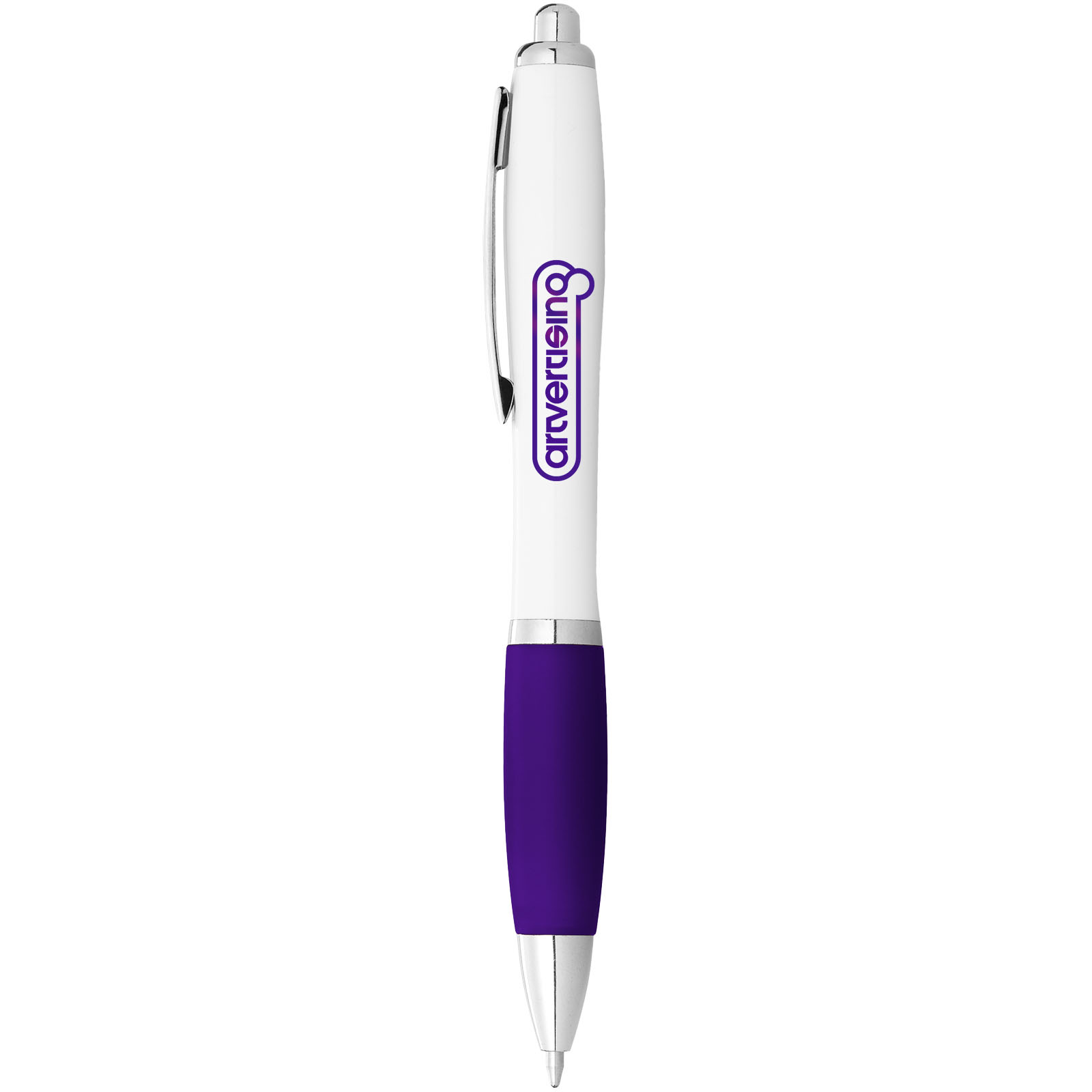 Nash Kugelschreiber weiß mit farbigem Griff (schwarze Mine) bedruckt mit Logo und kurzfristig lieferbar.