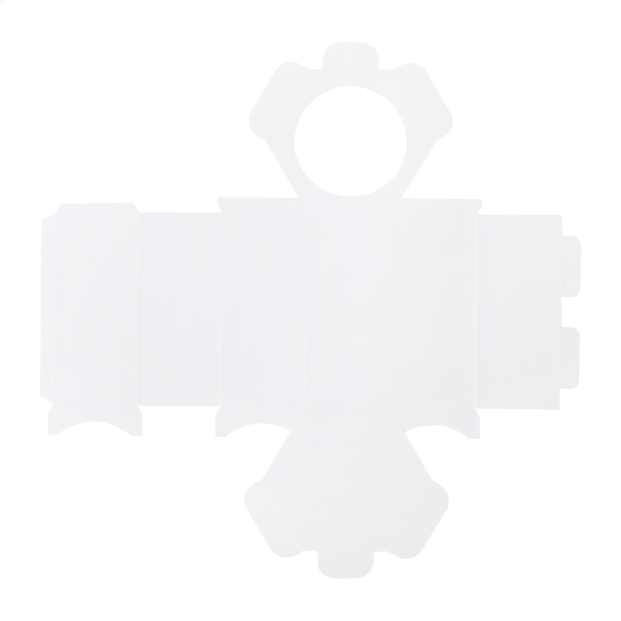 Individueller, sechseckiger Stifteköcher aus Pappe. Preis inkl. Vollfarbdruck. Mindestmenge: 100 Stk.